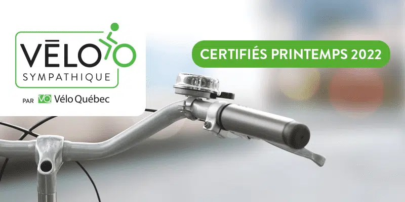 Montréal, le 13 juillet 2022 – Vélo Québec dévoile aujourd’hui le nom des 3 collectivités, 4 organisations et 2 campus reconnus lors de la 12e ronde de certification du mouvement VÉLOSYMPATHIQUE. Au total, depuis le début du programme, ce sont 34 collectivités, 58 organisations et 26 campus qui ont démontré leur engagement à faire du vélo une réelle option en matière de transport et de loisirs pour toutes et tous.