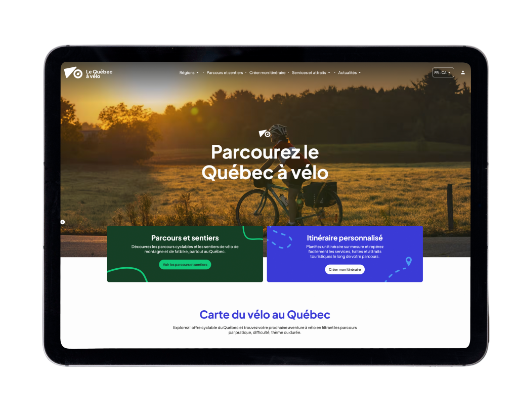 Enfin, une section éditoriale rassemble des contenus inspirants et pratiques pour donner envie de découvrir le Québec à vélo, tout au long de l’année. Des pages dédiées aux régions partenaires de la plateforme sont également accessibles, afin de mettre en lumière la richesse de l’offre de leur territoire.