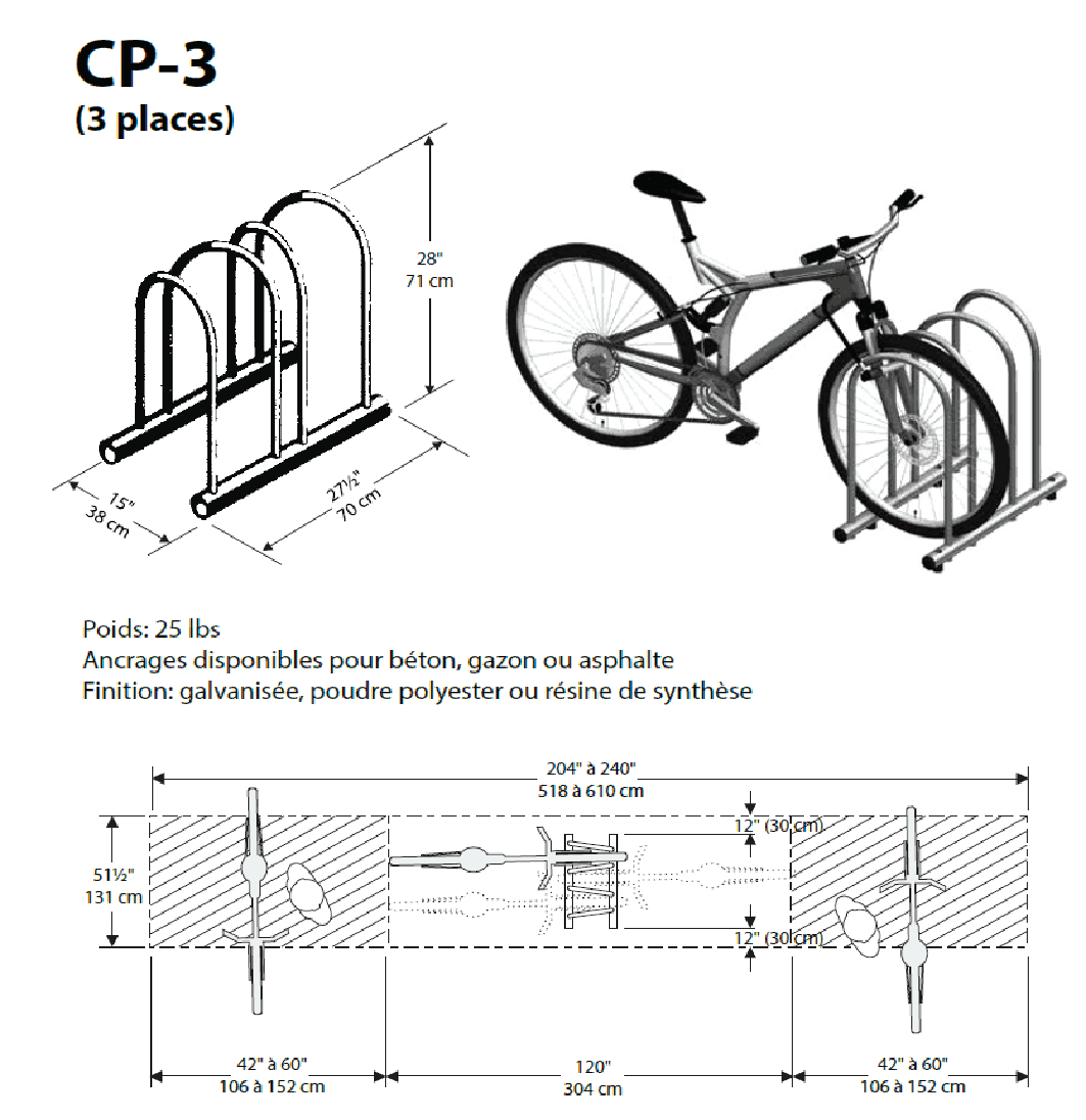 Des modules CP-3 et CP-7 peuvent être ajoutés pour former le nombre de places désirées.