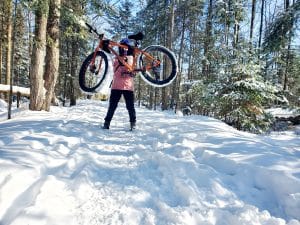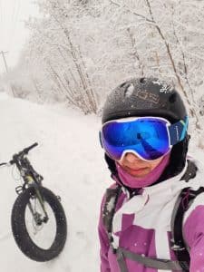 « Avec la neige, c’est un peu plus difficile. Avec la pratique, j’ai vraiment développé ma force et j’ai gagné en confiance. Le fatbike me permet de rouler toute l’année et, lorsque je reviens au vélo l’été, c’est plus facile. Ça m’a réconciliée avec l’hiver. »