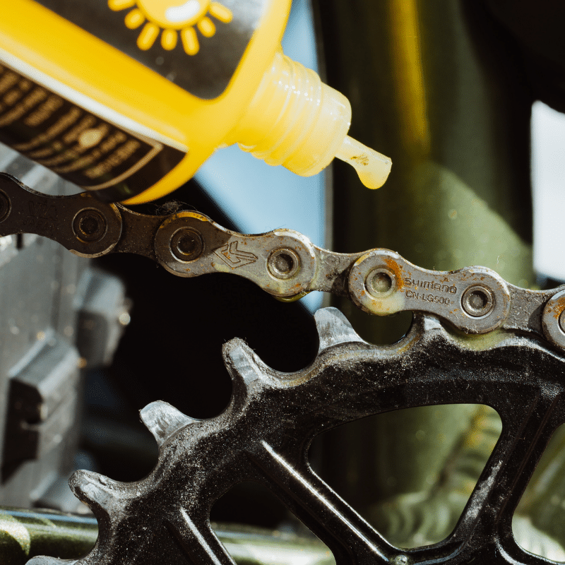 - Lubrifier la chaîne : un lubrifiant humide, dit wet, est plus épais, plus collant et plus résistant à l’eau. Il retient toutefois davantage de saleté, c’est pourquoi il est préférable d’essuyer l’excédent avant chaque sortie.