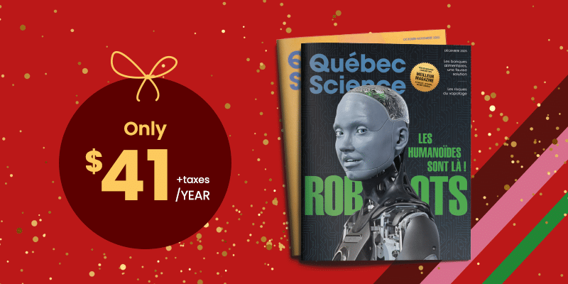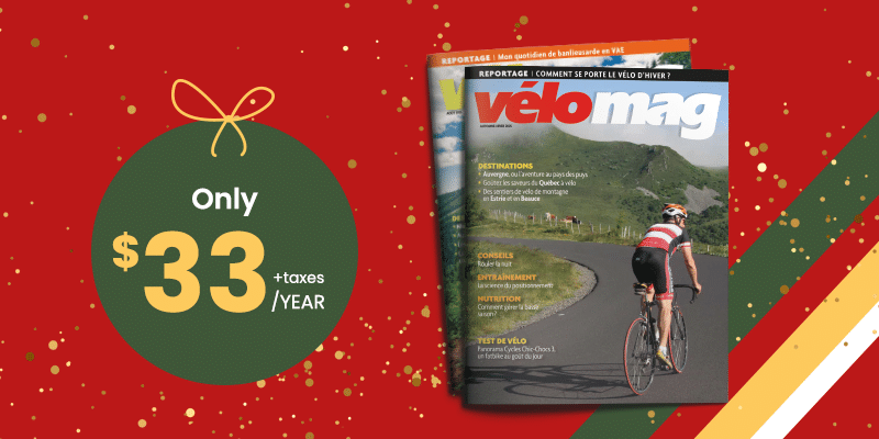 Take advantage of our exceptional holiday offer to gift a subscription to Vélo Mag for only$33 or Québec Science for $41 per year. Applicable on one-year subscriptions only. (French only).