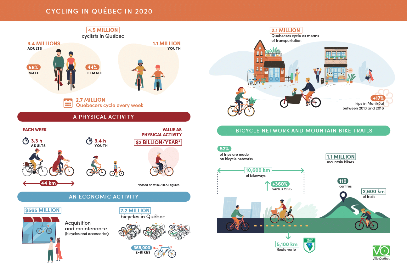 The data for Cycling in Québec in 2020 comes from a variety of sources: