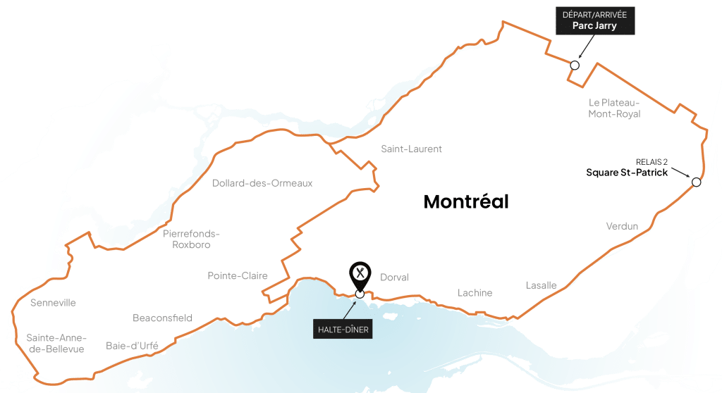 Vivez Montréal autrement ! Sur des rues entièrement fermées à la circulation, rejoignez des milliers de cyclistes pour traverser des arrondissements et municipalités emblématique comme Villeray-Saint-Michel-Parc-Extension, Ahuntsic-Cartierville, Dollards-des-Ormeaux, Senneville, Baie-D’Urfé, Pointe-Claire, Lachine, Ville-Marie, Le Plateau-Mont-Royal et plus encore.